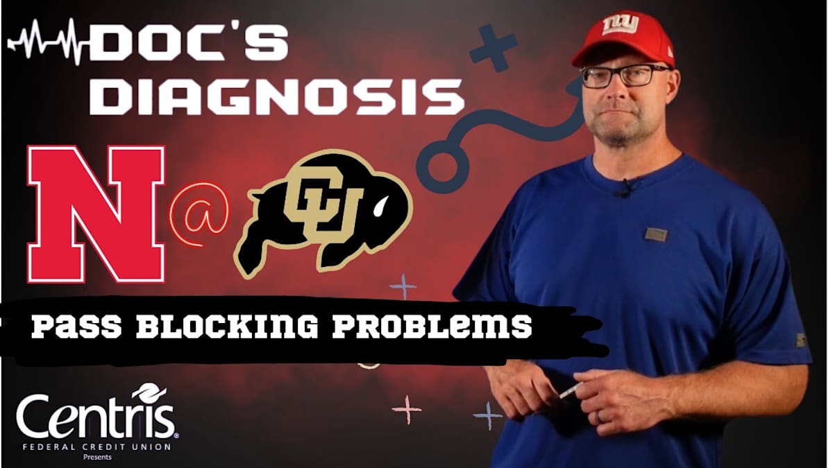 You can't blame this one on the quarterback. Dr. Rob Zatechka shows how overextension of the arms by Husker offensive linemen helped Colorado get to Nebraska QB Jeff Sims for a sack on a third-qu...